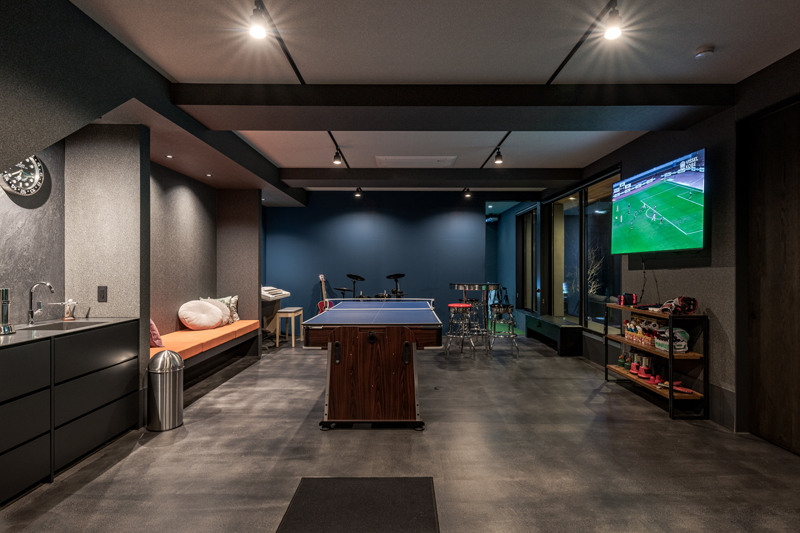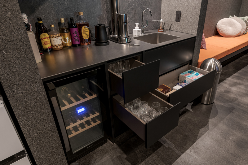 △プレイルームには小さなバーカウンターと流し台を