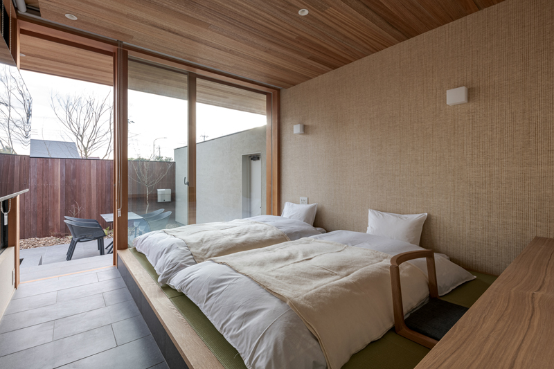 △寝室にはプライベート空間のデッキもあります。